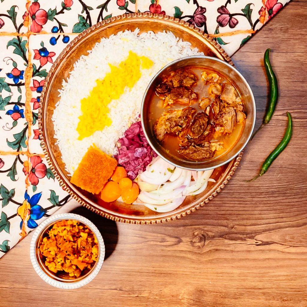 خوراک ماهیچه گوسفندی غذای ایرانی لذیذ در بهترین رستوران های کرمان
